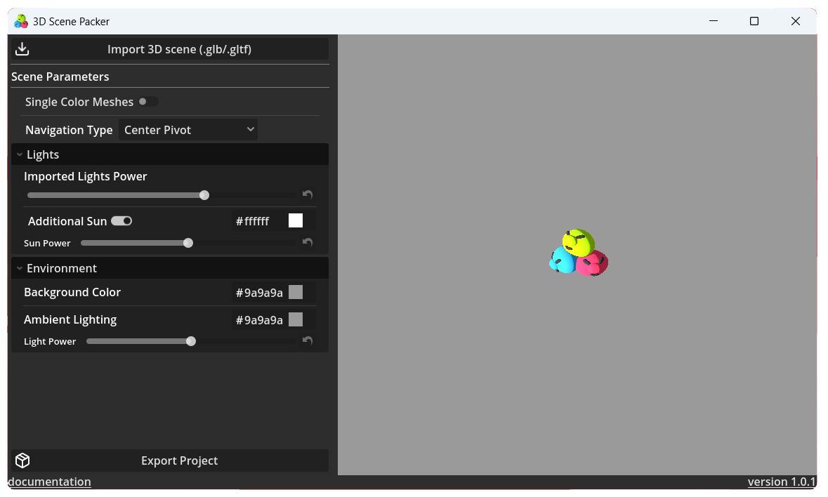 This program allows you to import your 3D scenes to generate a web viewer which can be hosted on sites like itch.io